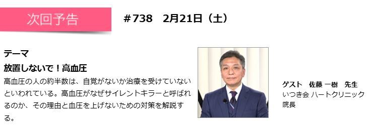 2月21日(土)20時54分からBSテレビ東京「教えてドクター!家族の健康」に院長の佐藤一樹医師が出演します。